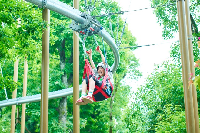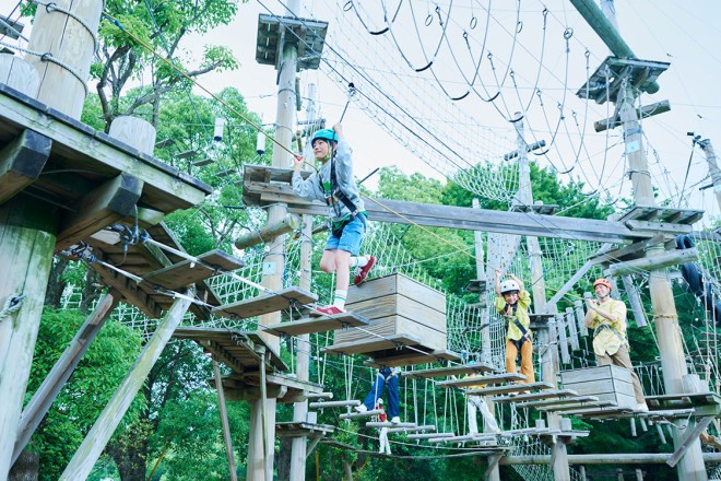 最高9mの高さに広がる日本最大級のアスレチックに挑め!