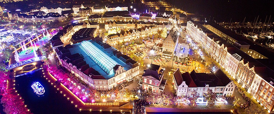 This symbolic tower of Huis Ten Huis Ten Bosch can be seen from anywhere in the park and has a strong presence as a landmark. If you take the elevator up to the observation deck 80 meters above ground, you can enjoy a spectacular view of not only the entire park, but also Omura Bay. You also can't miss the glittering townscape at night.