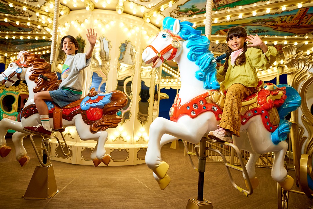 Japan's first three-story merry-go-round where you can enjoy a gorgeous views of the world inspired by myth. Highlited by a height of 15m, the world's tallest, the Italian-made carriages and gondolas are truly works of art. The views from the height are completely different between night and day. From 3rd deck, you can enjoy a panoramic views of Huis Ten Bosh.