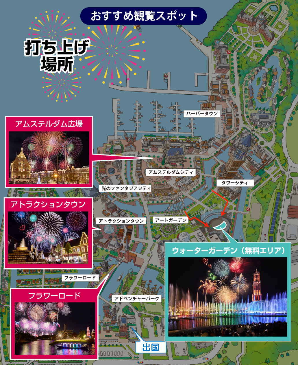 花火×日本最大の音楽噴水ショーが楽しめるエリアも