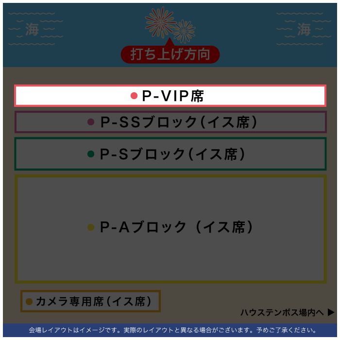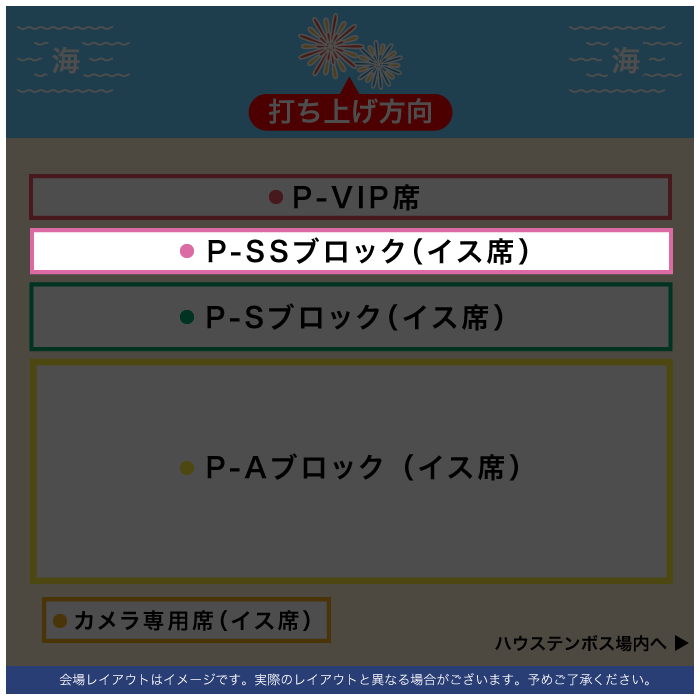 - チケット発券は10/30(木)16:00からとなります。花火観覧券をご指定のコンビニでお引取りの上、会場にお越しください。
