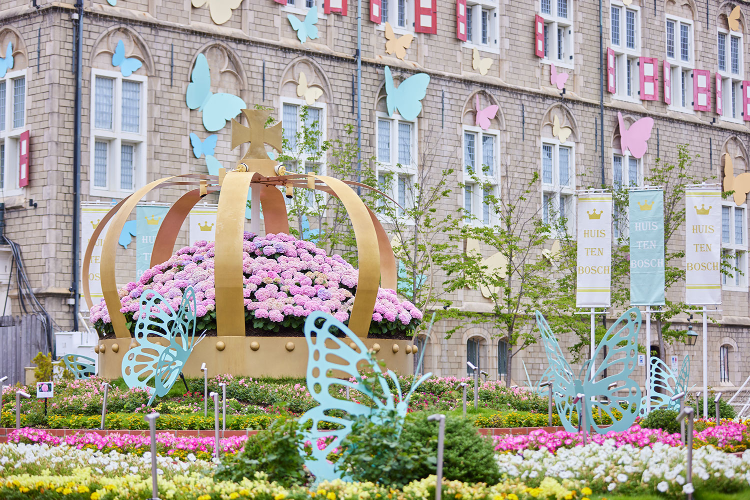At Flower Square, where the icon flower-crown stands, original varieties of hydrangea are full bloom. Take the best vacation photo!