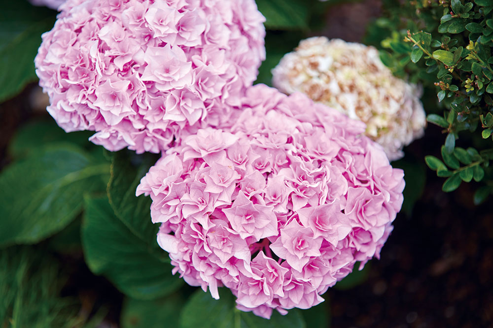 As you step into the entrance, you will be greeted by colorful hydrangeas.