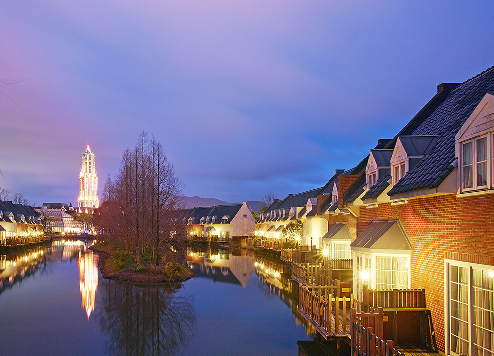 Conveniently located in the heart of Huis Ten Bosch, All rooms are 45㎡ or more, spacious for family gataway. One of the features is the room where you can enjoy the park illumination from the room window.