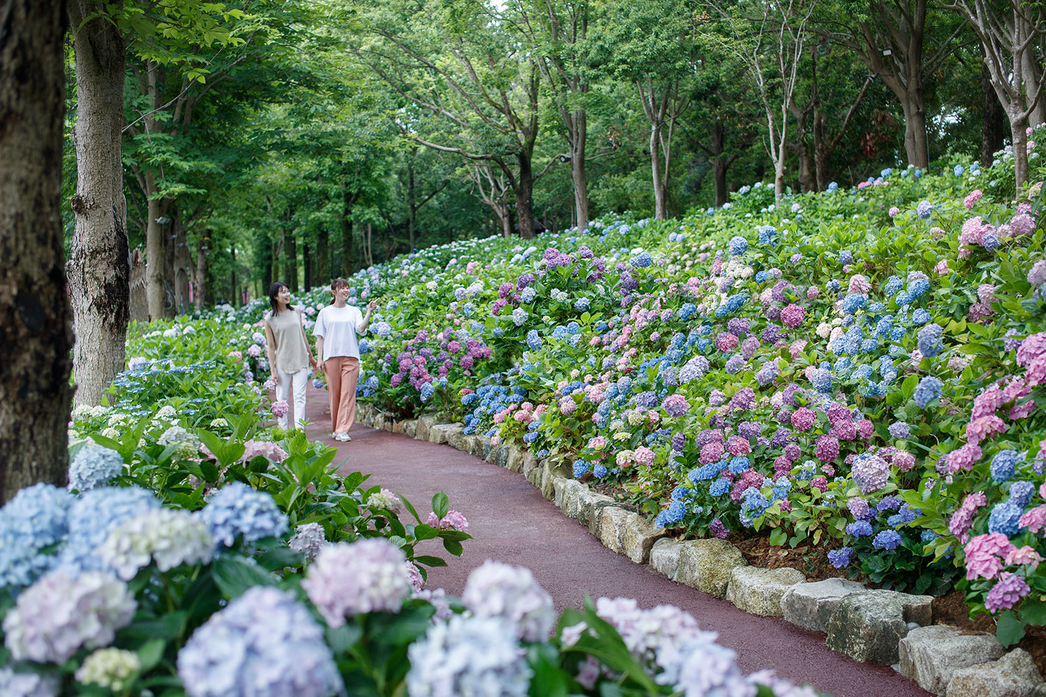 Take a walk alongside colorful Hydrangea.