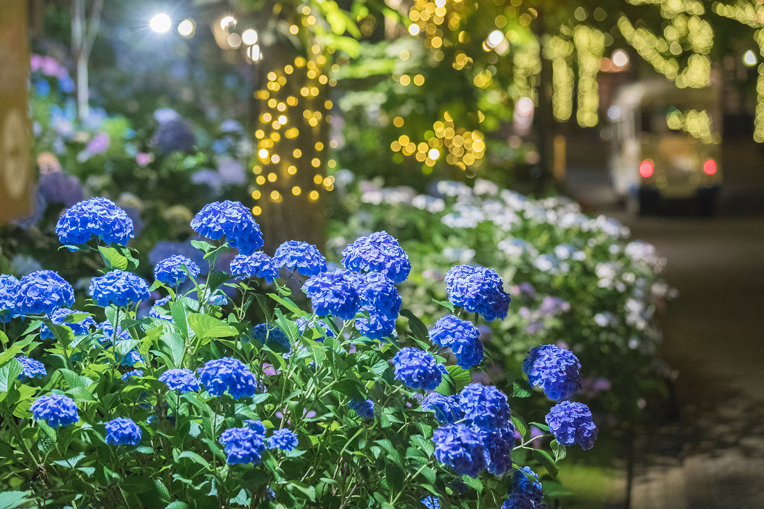 Along with the illuminated towncape, you can also enjoy led up hydrangeas that transforming the area into a romantic world.
