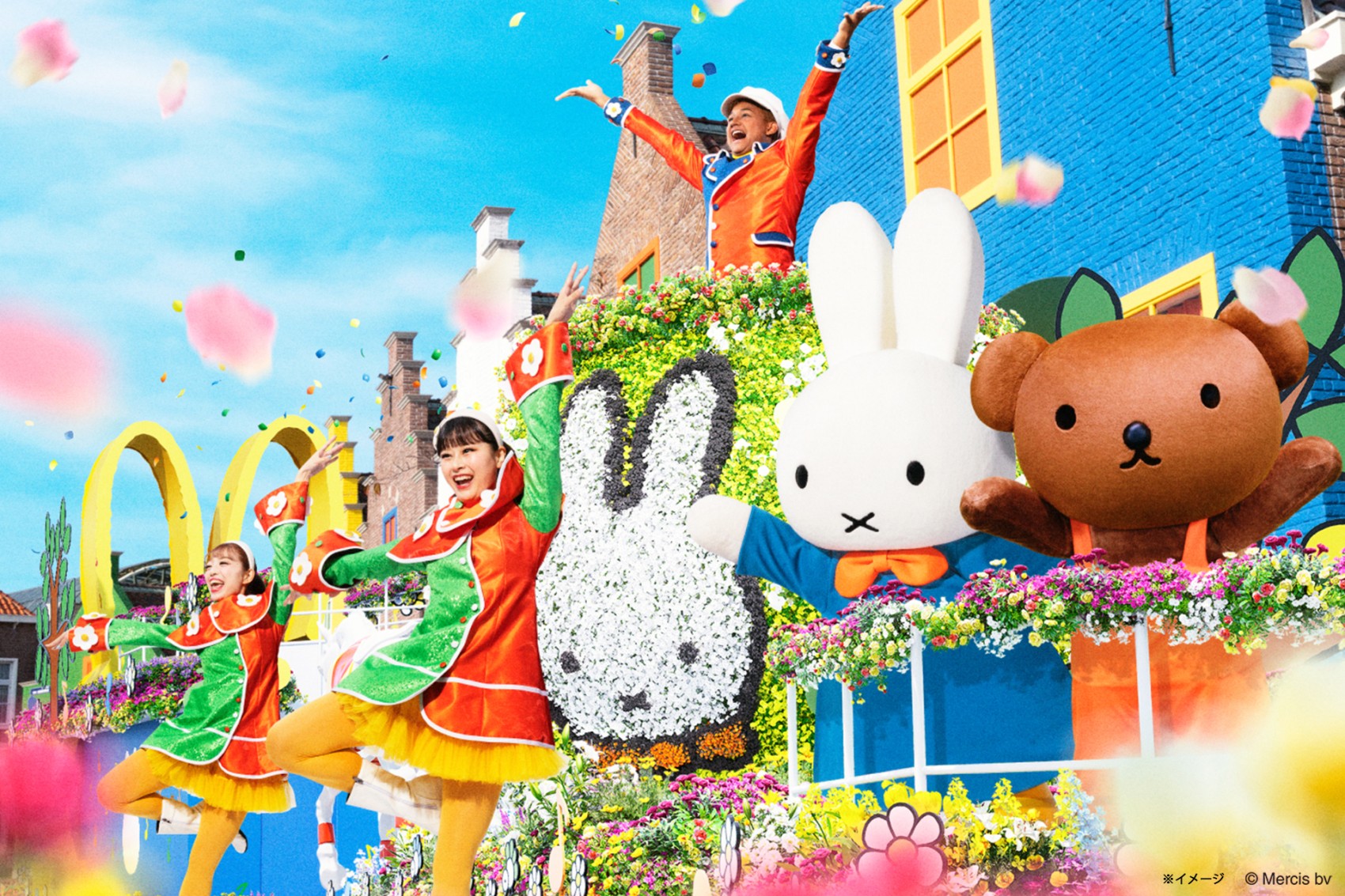 春の花で飾られた新フロートで『ミッフィー』とそのおともだちの『メラニー』、この春初登場の『グランティ』『ボリス』が賑やかに場内をパレードします。