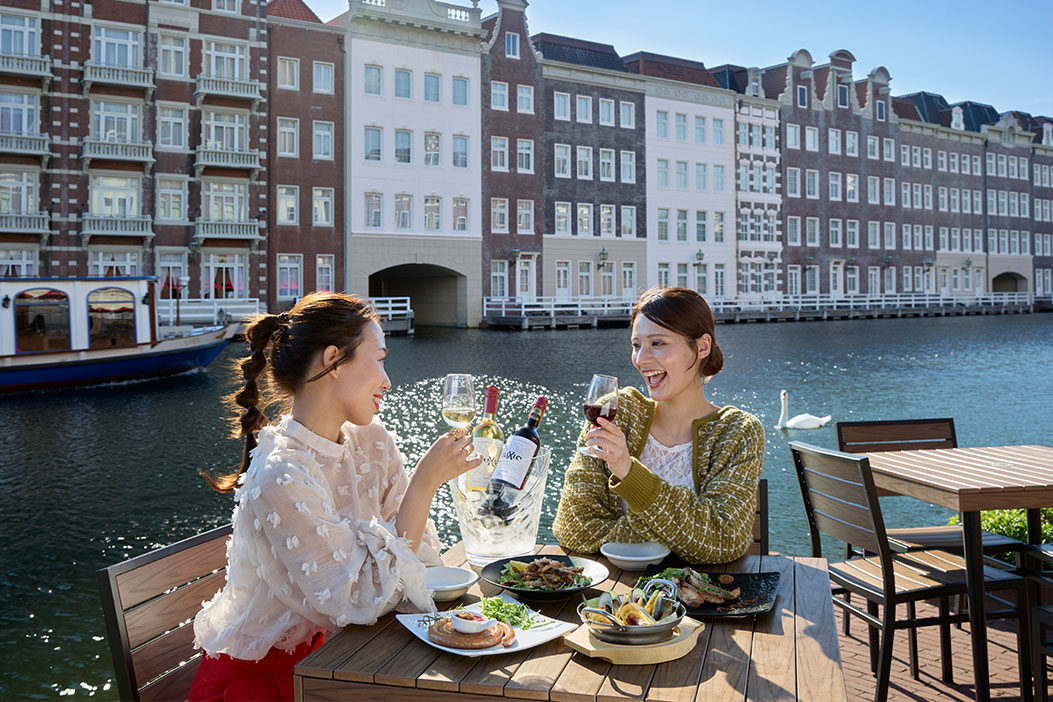 心地よく風が吹き抜ける運河沿いのテラス席で、九州各地のクラフトビールやワインを飲み比べ。秋の澄んだ空気の中、ワインの香りを引き立てる至極のグルメを五感で味わう至福のひとときを。美しい街の中で、優雅に過ごす秋の時間をお楽しみください。