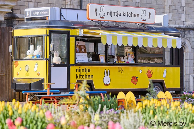 A food truck wrapped in a cute illustration of Miffy has appeared in Amsterdam Square.