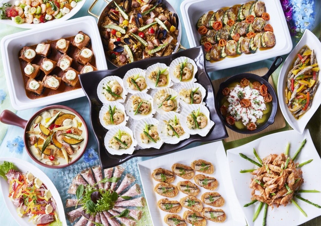 夏野菜やハーブ魚介類を使いブイヤベース・ラタトゥイユなどフランス料理を元にした一品や、レモンステーキ・お寿司などのお料理をブッフェでお楽しみいただけます。