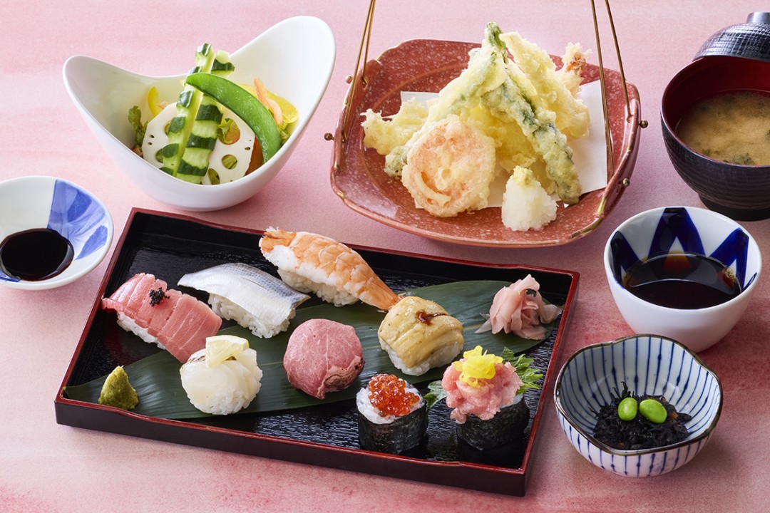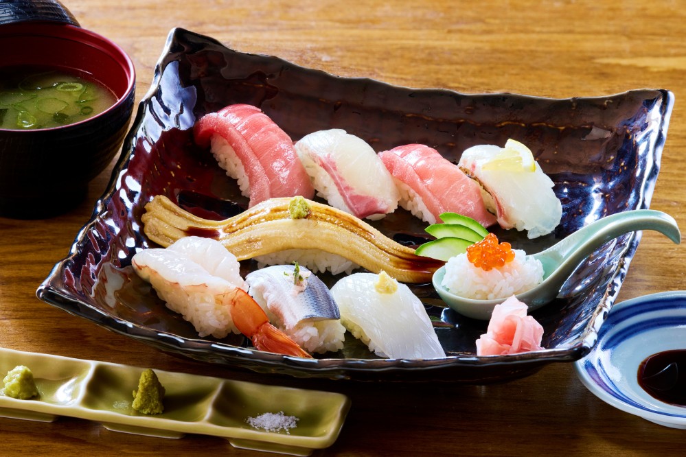 新鮮な魚が自慢の、長崎ならではの握り寿司を味わえる和食レストラン。おすすめは、近海の魚を使った握り寿司に、天ぷらや刺身を添えた贅沢な寿司御膳です。玄界灘の鷹島(たかしま)で育った本まぐろを使用した寿司や丼のほか、お子様メニューや五島うどんもご用意。ご家族そろって、長崎の海の恵みをご堪能ください。