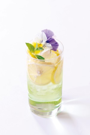 Apple & mint & soda A drink with the gentle sweetness of apples accented with lemon and mint. (alcoholic or non-alcoholic)