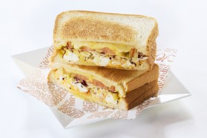 A hot sandwich with plenty of egg and cheese.