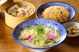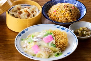 Nagasaki Sara Udon (medium size) Half fried rice 3 boiled dumplings *You can choose between thin or thick noodles for the sara udon.