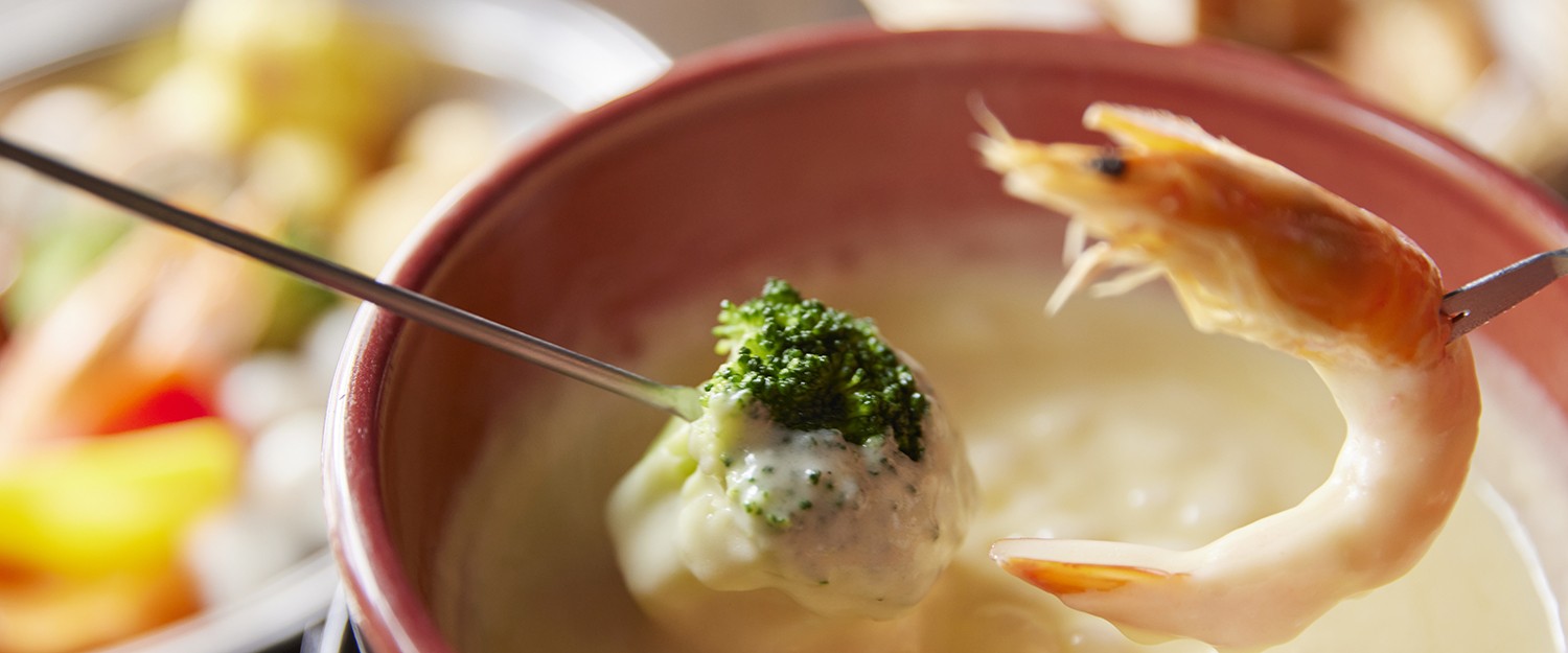 A tasteful Cheese Waag building was modelled after the Cheese Weighing Station in Hoorn, the Netherlands. The restaurant is located 2nd floor of the building, where you can enjoy authentic cheese fondue menu. Dipping a wide variety of dips such as shrimp, scallops, and vegetables into a hot Swiss cheese. You will be happy when you put it in your mouth! Recommended for cheese lovers.