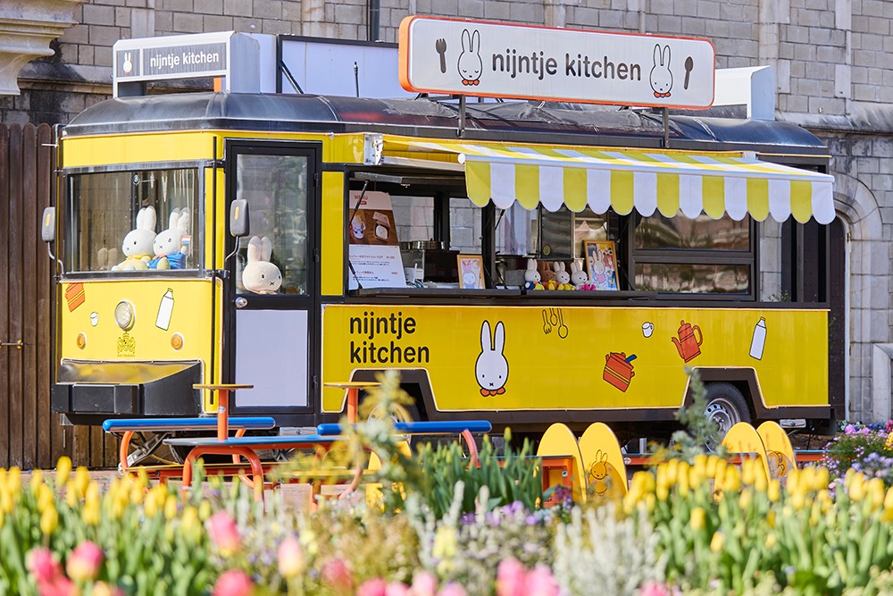 A food truck wrapped in a cute illustration of Miffy has appeared in Amsterdam Square.