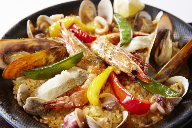 南欧を思わせる明るいレストランで、本格的な地中海料理を味わう