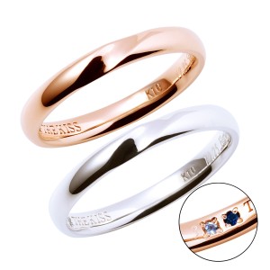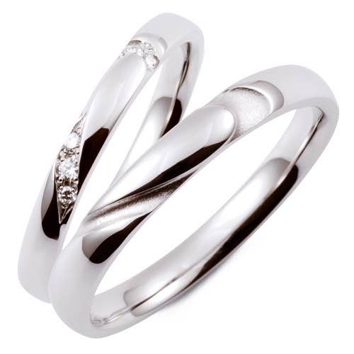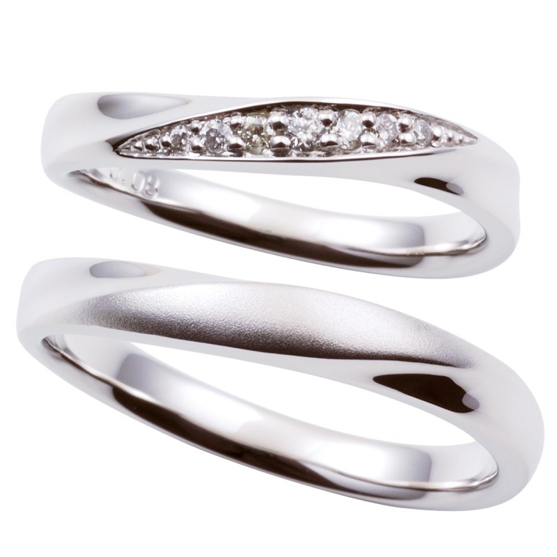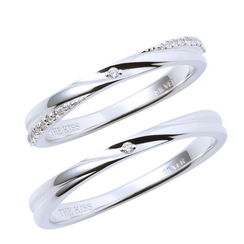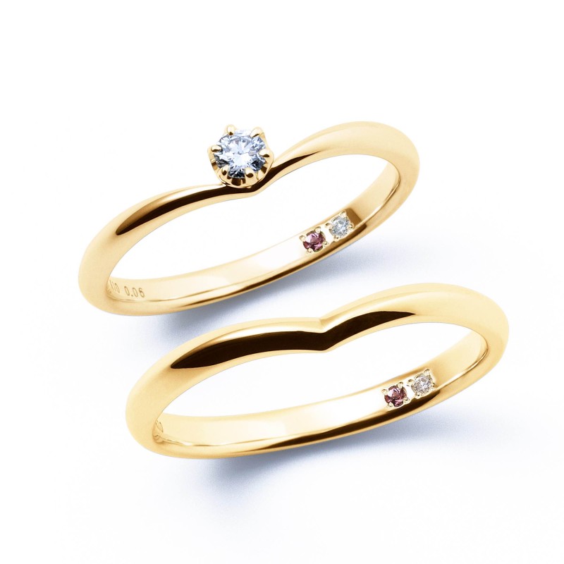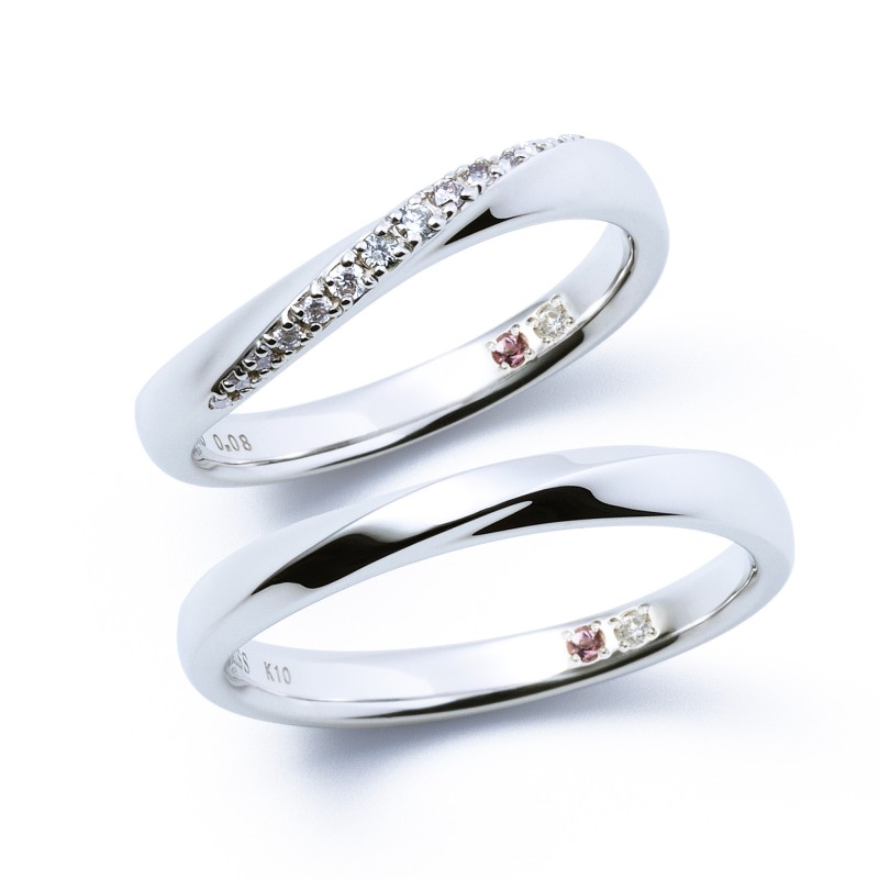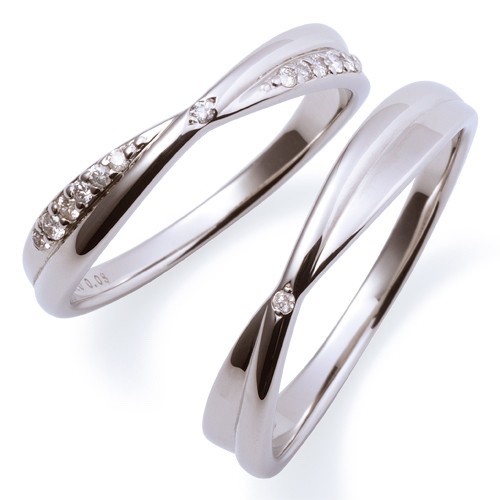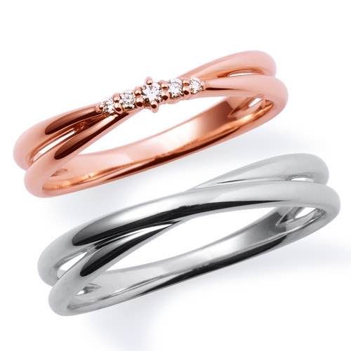 The pair of rings from the "Crossing" series expresses the meeting of two people with two intersecting lines. A diamond, which represents "eternity," is set in the center with the wish that the love between the two people will continue forever.