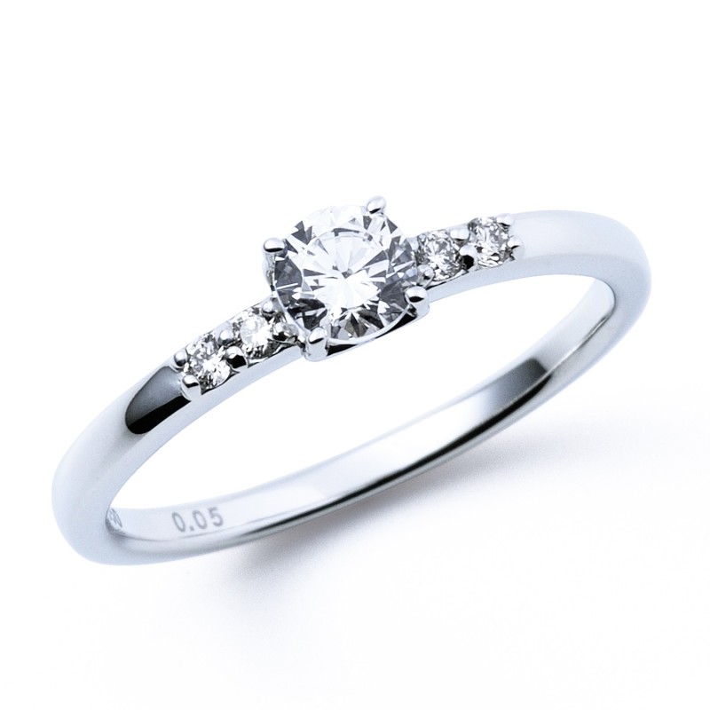 A straight-line engagement ring that brings out the beauty of the diamond and represents "unwavering love."