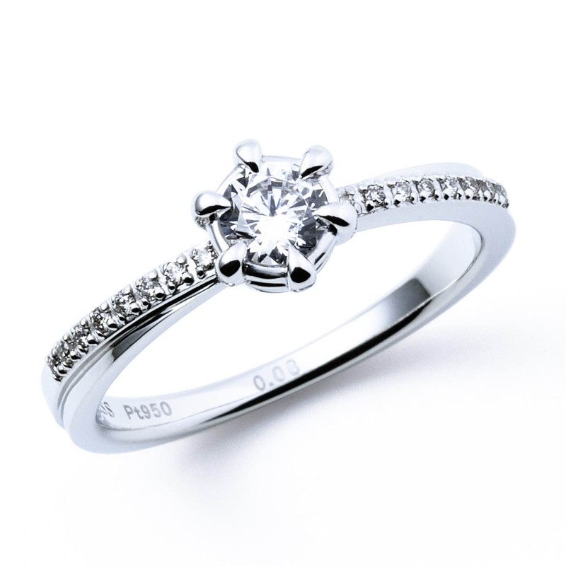 For ladies, the single diamond set in the center shines beautifully and exudes presence.
