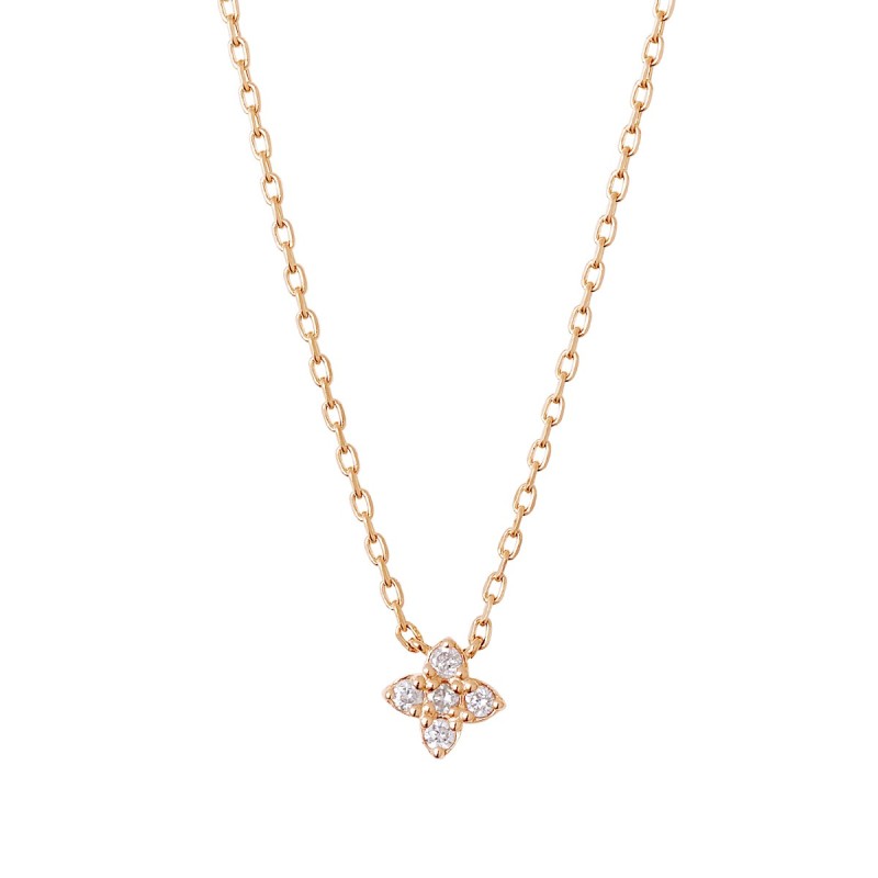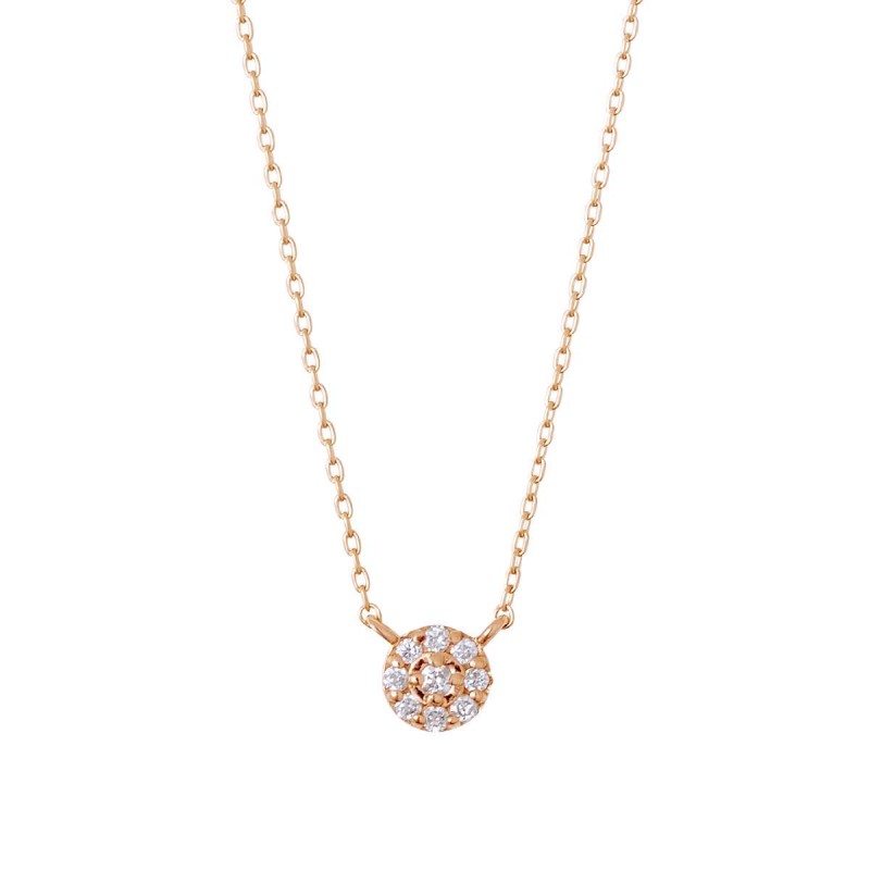 This necklace is small yet striking, with a central diamond surrounded by eight melee diamonds.