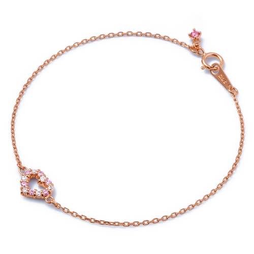 A bracelet made of alternating white and pink cubic zirconia stones shaped like an open heart.