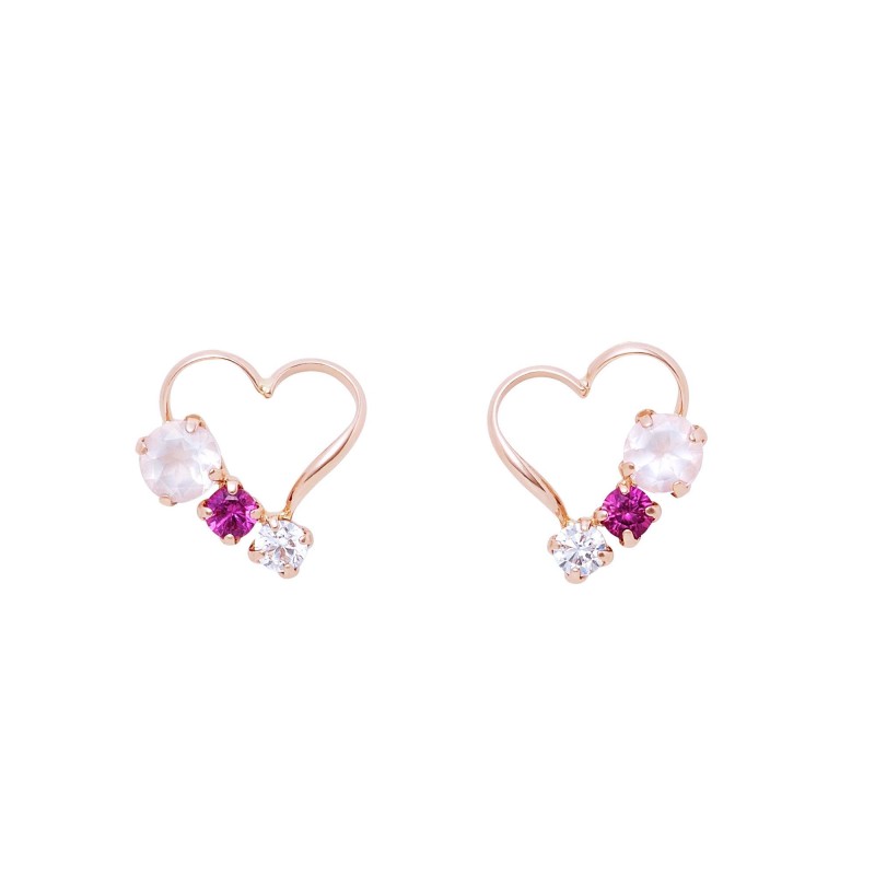 The eye-catching ruby-colored stones and beautiful, transparent clear-colored stones create a gorgeous look around the ears.