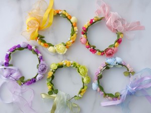The flower crown features an organza ribbon on the back and is cute from any angle. The design is like the roses blooming at Huis Ten Bosch and the pale colors match townscape inside the venue.