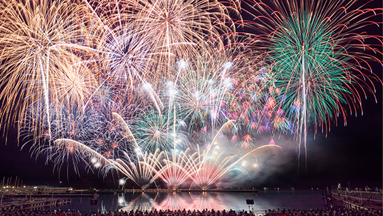 We have special viewing seats available where you can enjoy the 22,000 fireworks up close, the largest in western Japan.